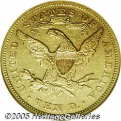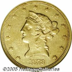 <B>1873-S $10 XF45 NGC.</B></I> Although the Philadelphia Mint shipped four obverse dies west for production of the 1873-S Eagle, only one variety was known to Breen when his 1988 <I>Encyclopedia</B></I> went to press. The reverse die was most likely on hand in San Francisco from an earlier year. A mere 12,000 coins were struck, virtually all of which were placed into circulation on the frontier. Today, just one Mint State coin is known to the major grading services (an MS61 PCGS example), and the certified AU population is only 37 pieces (2/05). This is a rare and obviously important Choice XF representative whose moderately bright surfaces are overlaid in delicate honey and copper-gold hues. There is plenty of bold striking definition remaining, particularly in the centers, and the number of abrasions is consistent with an S-mint gold coin that saw 15 points of wear. All in all, this is an attractive representative of an issue that is seldom offered in any grade.