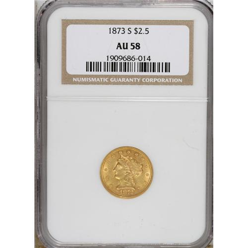 1873-S $2 1/2 AU58 NGC. NGC Census: (46/27). PCGS
