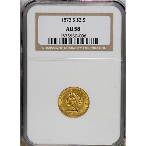 1873-S $2 1/2 AU58 NGC. Only 27,000 pieces were struck