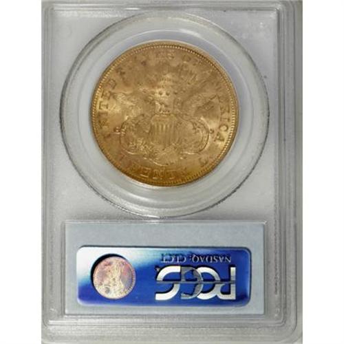 <B>1873-S $20 Closed 3 AU58 PCGS.</B></I> PCGS Population (102/157). NGC Census: (582/257). Mintage: 1,040,600. Numismedia Wsl. Price for NGC/PCGS coin in AU58: $900. (#8969)<BR><BR><B>Coin Engraver:</B> James B. Longacre<BR><BR><b>Shipping:</b> Coins & Currency (<a target="_blank" href="http://www.heritageauctions.com/common/shipping.php">view shipping information</a>)