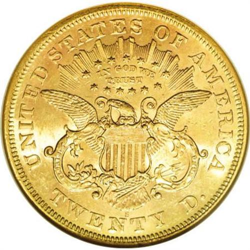 <B>1873-S $20 Open 3 AU58 NGC.</B></I> Very nearly full luster is retained on bright yellow-gold surfaces that show design features that are sharply impressed. Scattered marks, entirely expected for a large coin, are noted. However, the overall appeal on this AU58 is greater than on many full Mint State examples.<BR><I>From The Wild West #1 NGC Registry of Type Three Double Eagles.</B></I><BR><BR><B>Coin Engraver:</B> James B. Longacre<BR><BR><b>Shipping:</b> Coins & Currency (<a target="_blank" href="http://www.heritageauctions.com/common/shipping.php">view shipping information</a>)