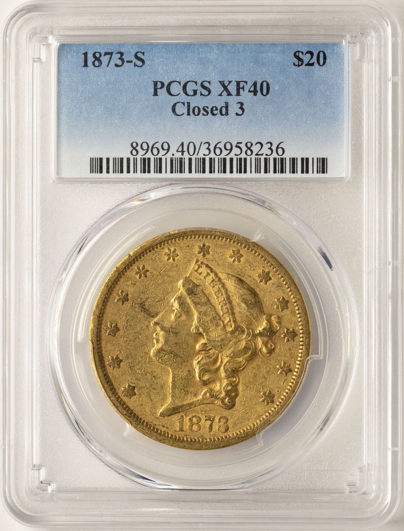 One 1873-S Closed 3 $20 Liberty Head Double Eagle Gold Coin PCGS XF40.