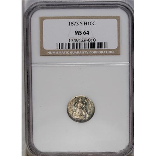 1873-S H10C MS64 NGC. Dapples of cobalt-blue, olive-gr 1873-S