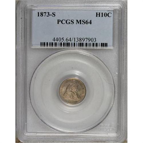 <B>1873-S H10C MS64 PCGS.</B></I> PCGS Population (60/28). NGC Census: (80/40). Mintage: 324,000. Numismedia Wsl. Price for NGC/PCGS coin in MS64: $300. (#4405)<BR><BR><B>Coin Engraver:</B> Christian Gobrecht<BR><BR><b>Shipping:</b> Coins & Currency (<a target="_blank" href="http://www.heritageauctions.com/common/shipping.php">view shipping information</a>\)