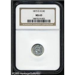<B>1873-S H10C MS65 NGC.</B></I> Nearly untoned surfaces reveal sharply struck devices and strong luster. Well preserved throughout. Population: 35 in 65, 9 finer (1/05). Lot:6155