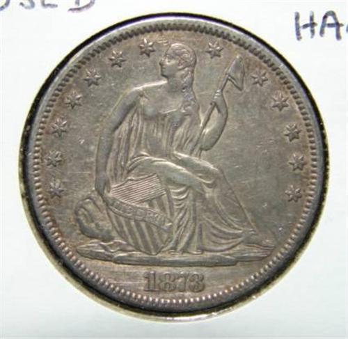 1873 SEATED LIBERTY HALF DOLLAR. AU. Closed 3.