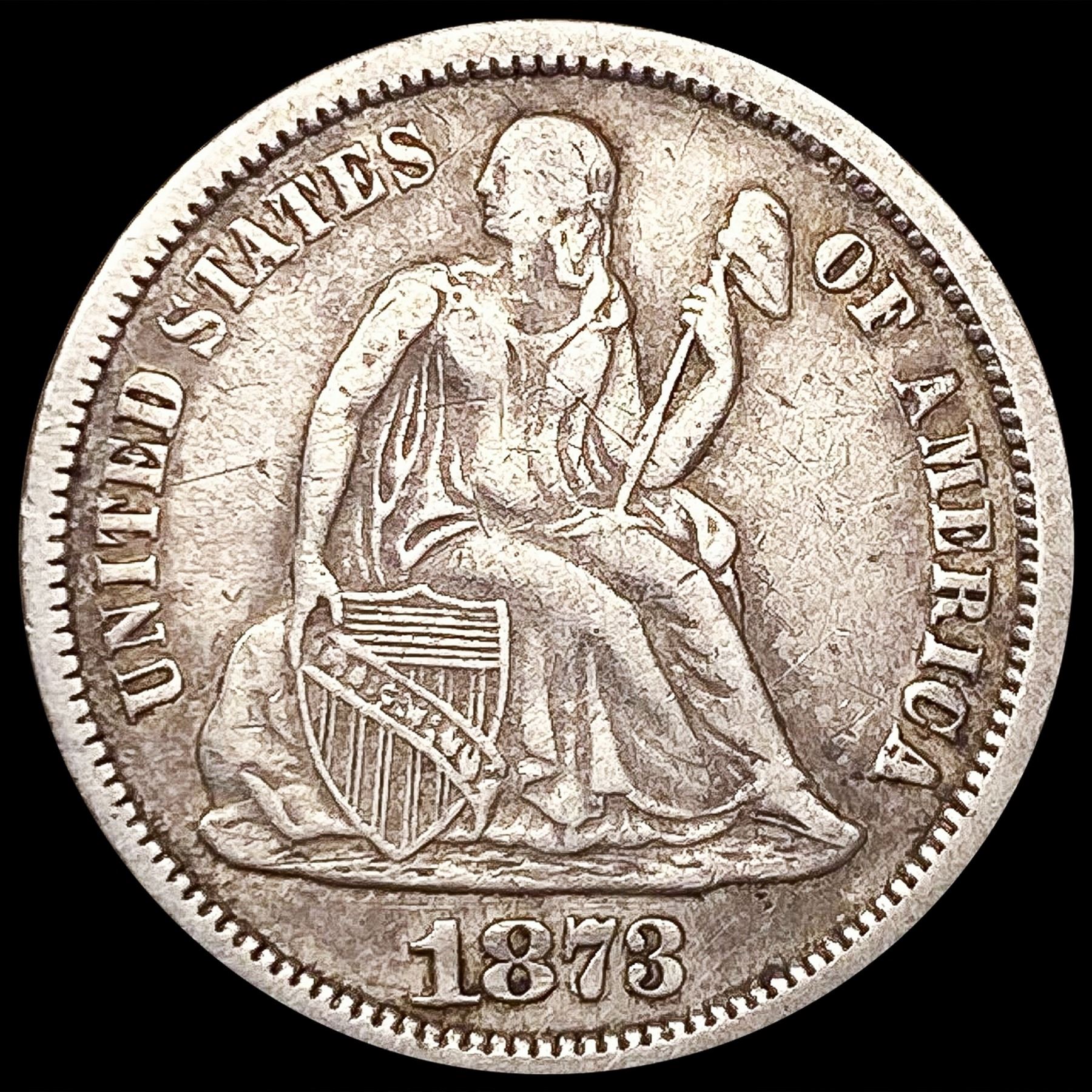1873 Seated Liberty Dime LIGHTLY CIRCULATED