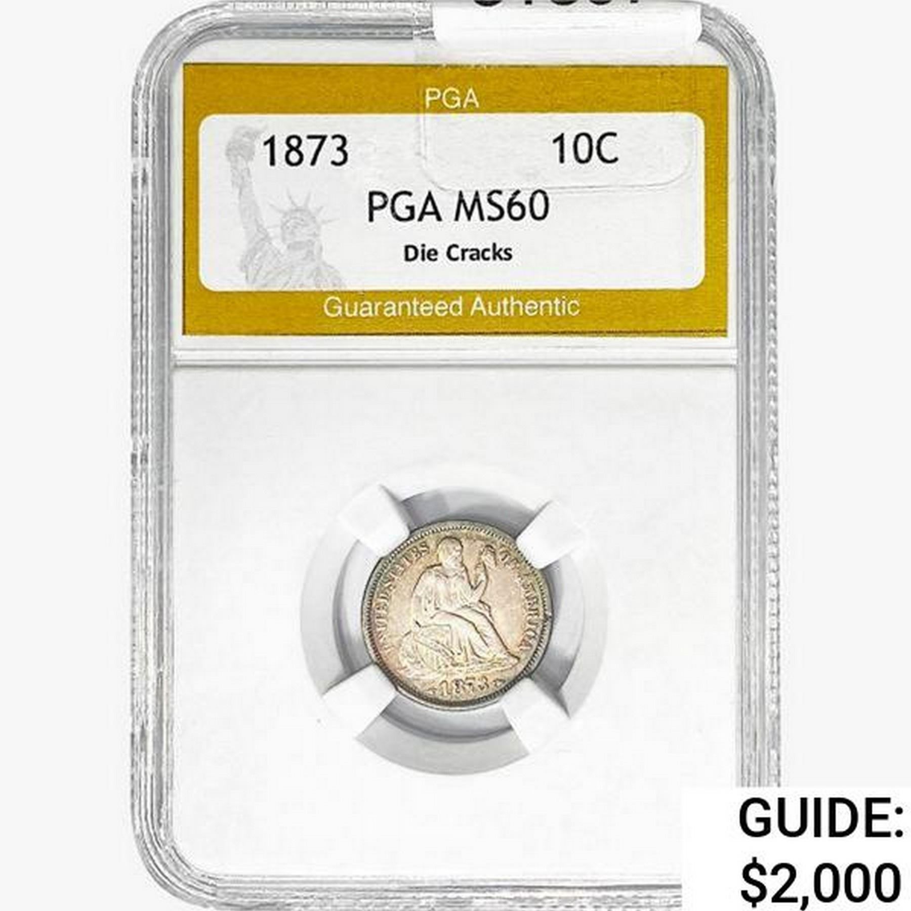 1873 Seated Liberty Dime PGA MS60 DIE CRACKS