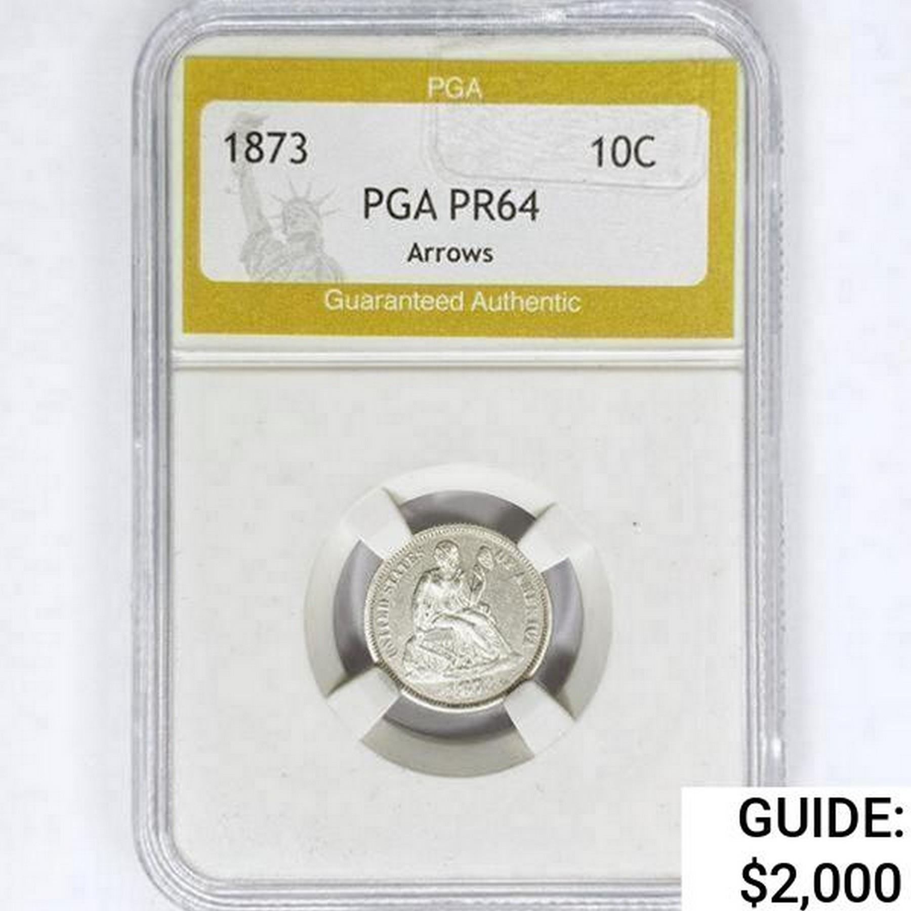 1873 Seated Liberty Dime PGA PR64 Arrows