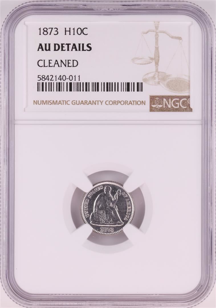 One 1873 Seated Liberty Half Dime Coin NGC AU Details. NGC Certified.