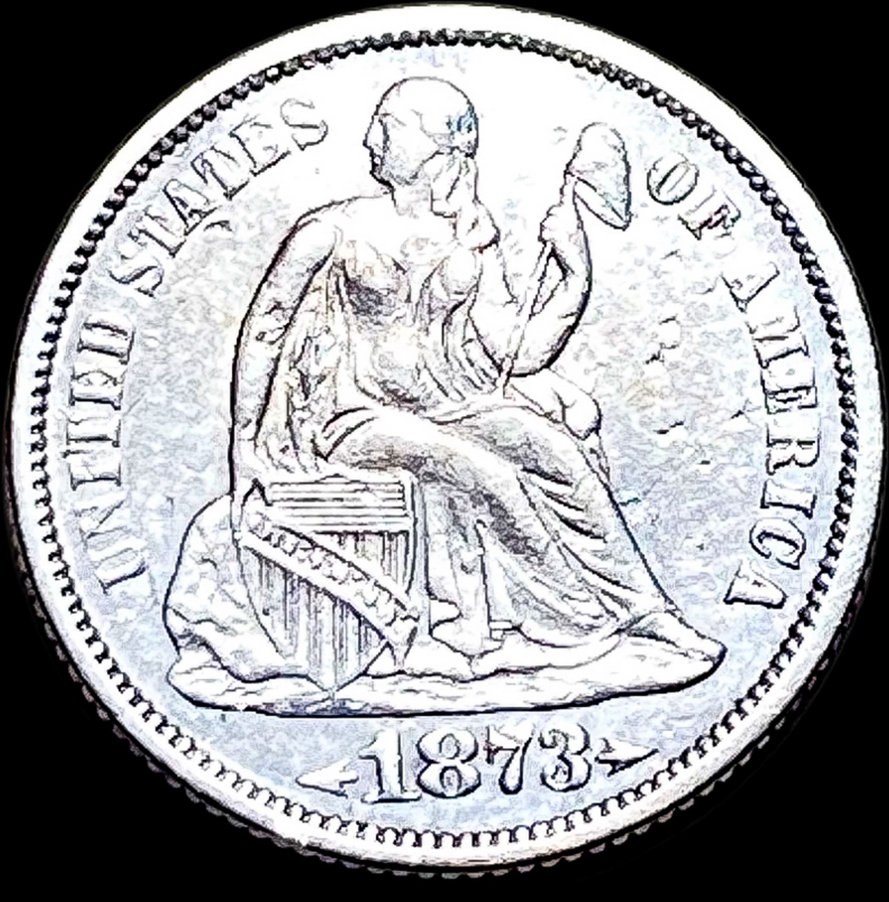 1873 Silver Seated Liberty Dime CLOSELY UNCIRCULATED