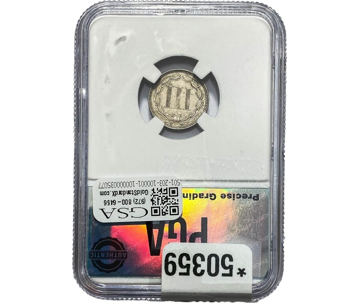 c. THREE (3) DAY RETURN POLICY. Certified Coin and Uncertified and Certified Currency lots paid for within seven (7) days of the auction or “Buy it Now” salemay be sold with three (3) day return privileges (only upon written pre-approval by GSA) unless otherwise noted in the description as “Sold As Is / No Return”. You may return Product(s) under the following limited conditions with written pre-approval from GSA: (i) within three (3) days of receipt of the Product(s), you must first notify GSA by email (at info@bidgoldstandard.com) and telephone (972-800-6456), obtain written pre-approval via email, and immediately ship the return Product(s) in their original condition, fully insured, and housed in their original holder or packaging, to the attention of “GOLD STANDARD AUCTIONS, LLC – RETURNS, 13859 Diplomat Drive, #150, Dallas, TX 75234.” Said return Product(s) must be in GSA’s possession, custody and control within thirty (30) days after the conclusion of the Product(s) auction or such return privileges are revoked without further notice and the late Product will be shipped back to the Bidder at his/her/its sole expense. A non-negotiable restocking fee of fifteen percent (15%) of the purchase price ($10.00 per Product/lot minimum) will be deducted from the refund for each returned Product (or billed directly to the Bidder). Postage and handling, customs, and other fees are not refunded. After the three-day period (from Bidder’s receipt), no Product(s) may be returned for any reason. Late remittance for purchases revokes all return privileges.