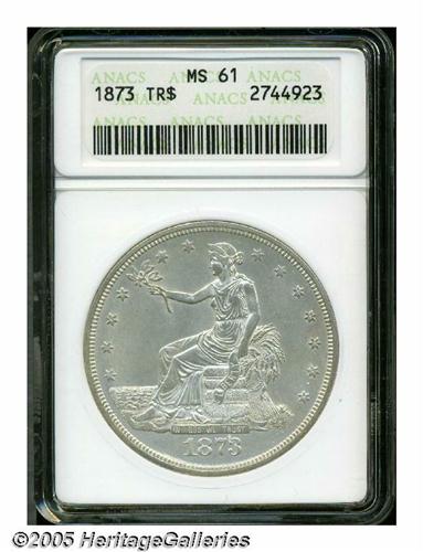 1873 T$1 MS61 ANACS. A scarce, first-year issue t