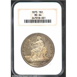 1873 T$1 MS64 NGC. This is one of the most significant Trade Dollars in this sale. The first-year 18