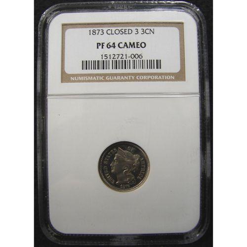 1873 U.S. THREE CENT NICKEL. Closed 3. Proof 64 Cameo. Graded by NGC.