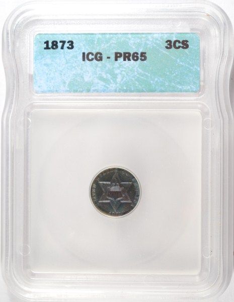 1873 THREE CENT SILVER ICG PROOF65, GEM! SUPERB COLOR! RARE, LOW MINTAGE PROOF