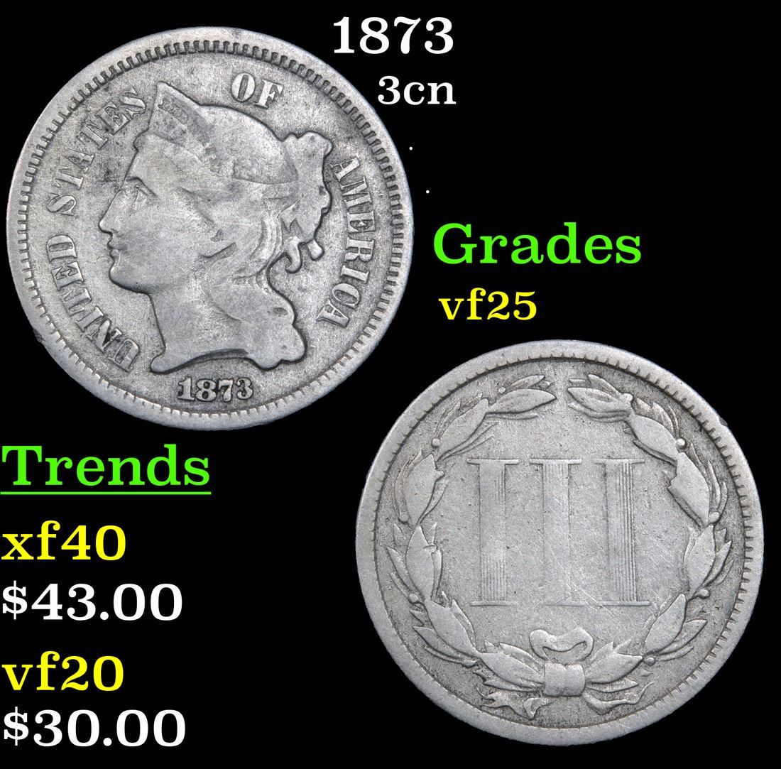 1873 . . Three Cent Copper Nickel 3cn Grades vf+.