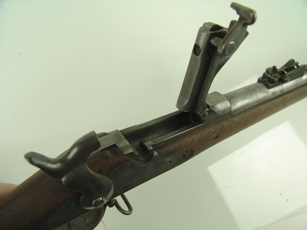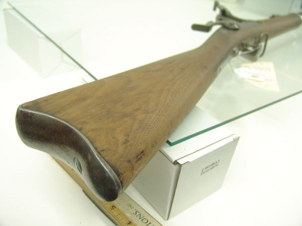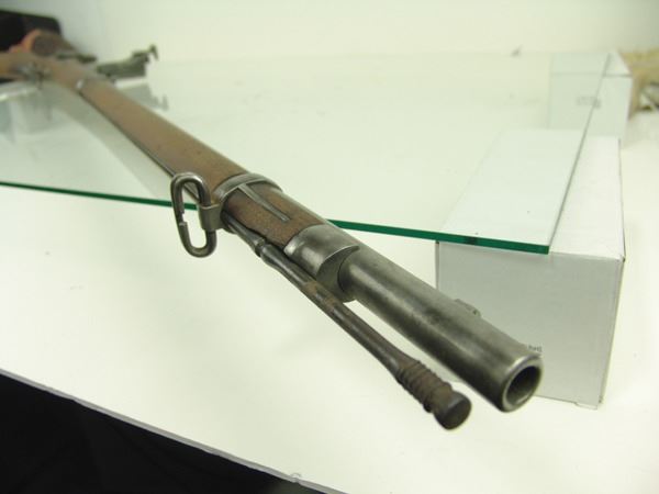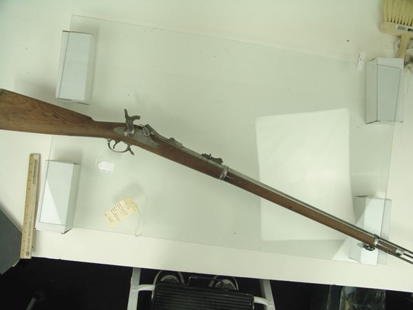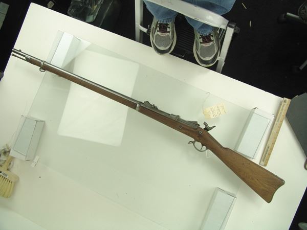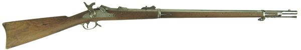 Ca. 1870 52" Early .45-70 cal. long arm with 32-5/8" round barrel, long range rear sight, sling lugs, and original steel cleaning rod. good condition, has refinished stock. S/N 298966