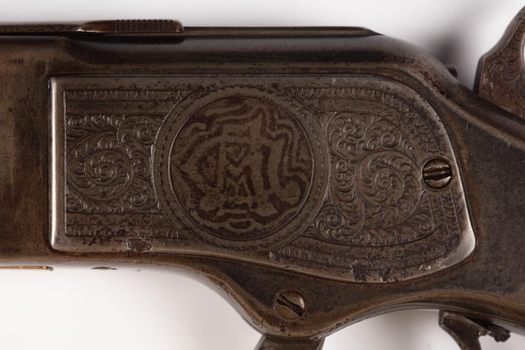 Fancy deluxe wood. 44 caliber. 24.5" octagon barrel. Classic factory scroll and wildlife engraving. Serial #267797B. Factory letter included.
