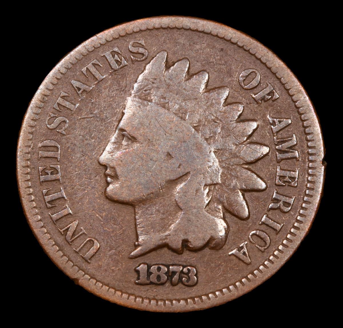 1873 closed 3 . Indian Cent 1c Grades f+.