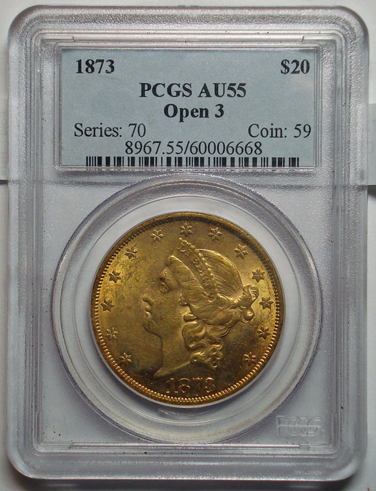 1873 open 3 $20 GOLD PCGS55