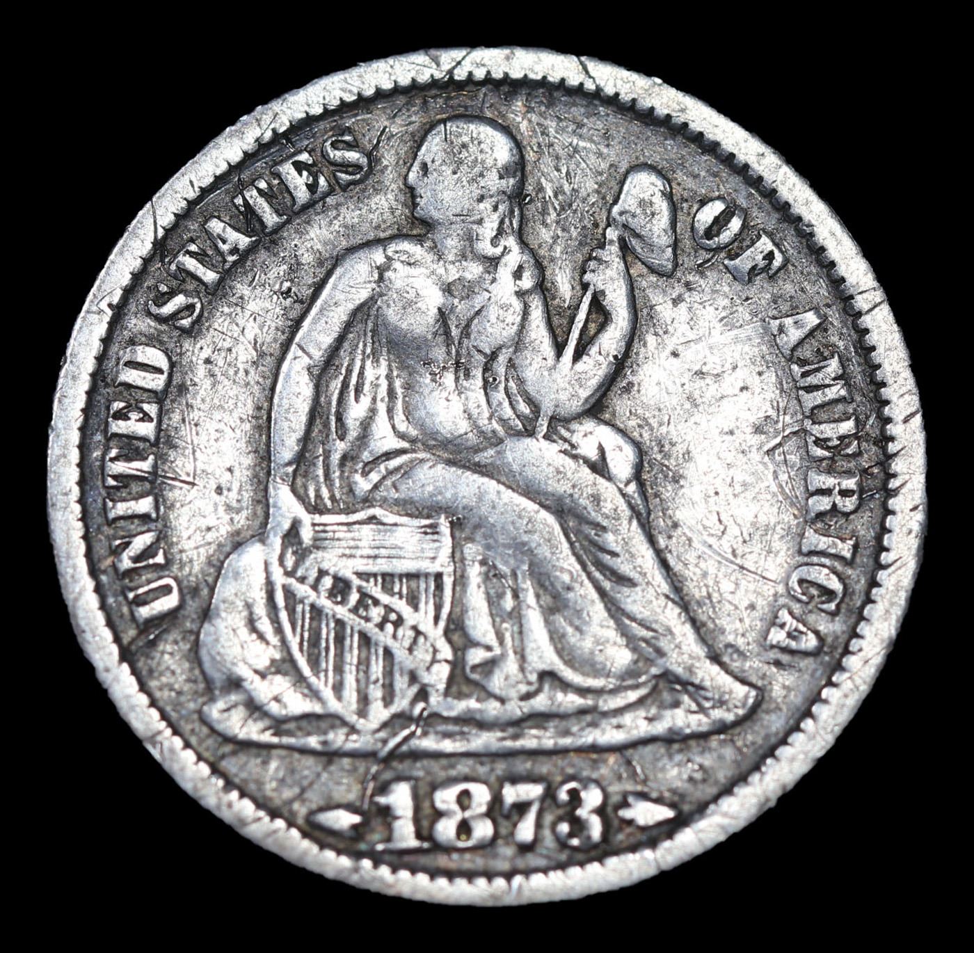 1873-p Arrows Seated Liberty Dime 10c Grades vf details.