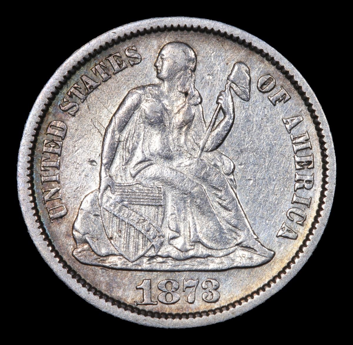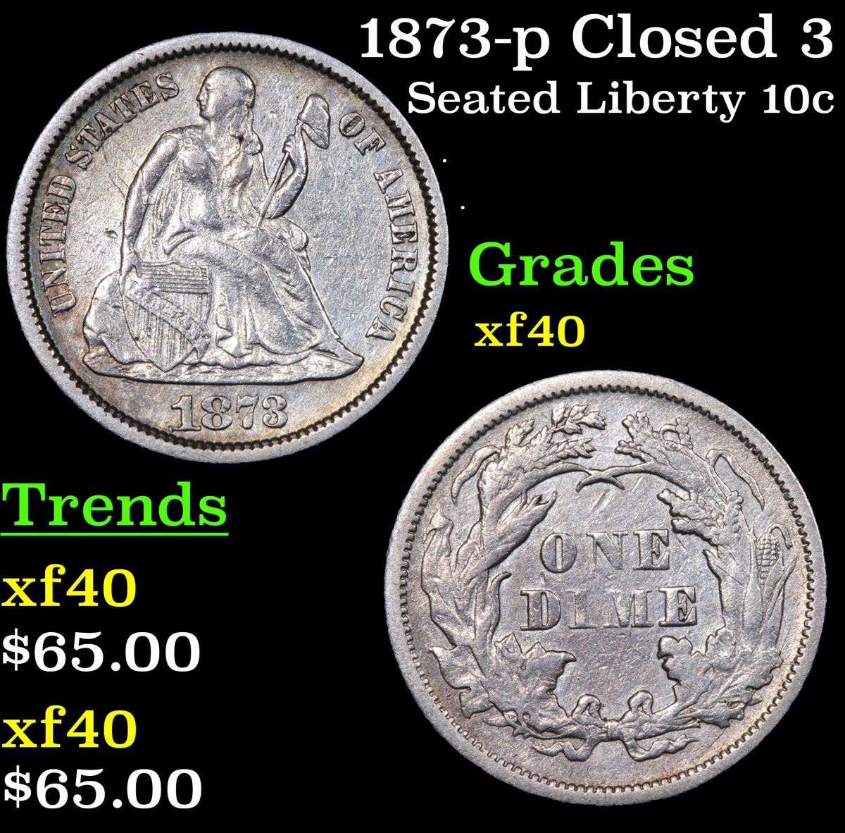 1873-p Closed 3 . . Seated Liberty Dime 10c Grades xf.