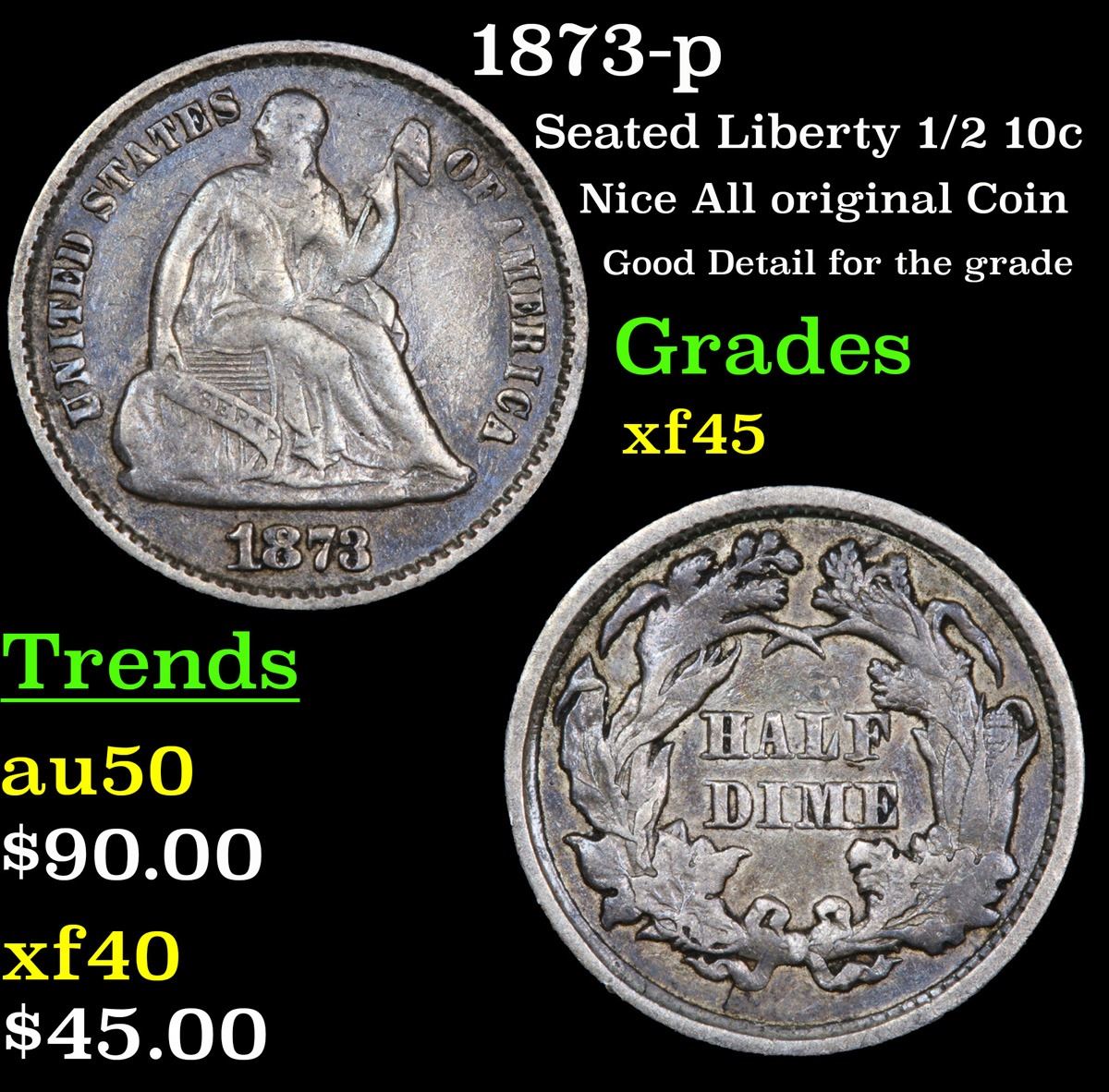 1873-p Seated Liberty Half Dime 1/2 10c Grades xf+.