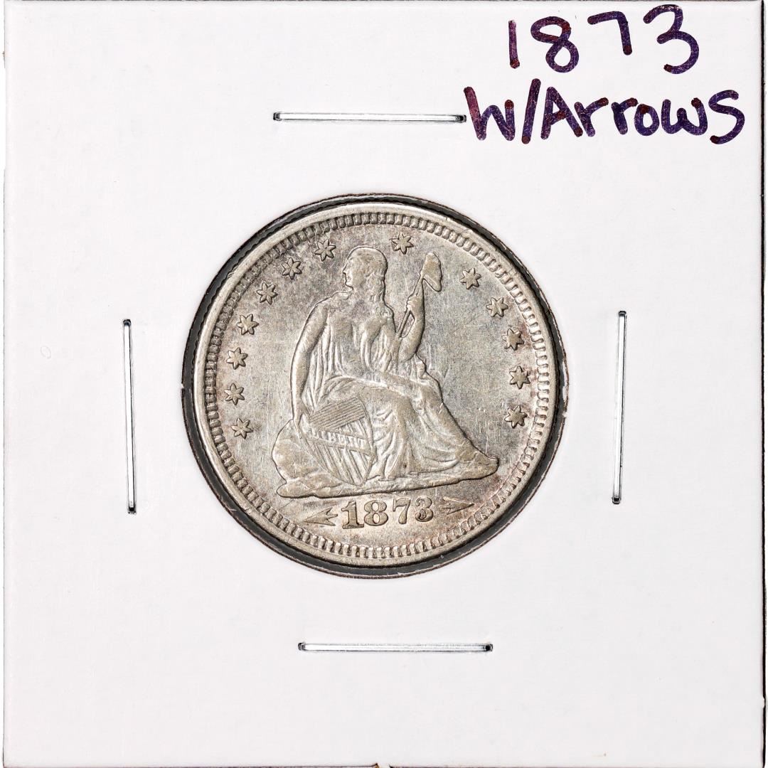 One 1873 w/Arrows Seated Liberty Quarter Coin.