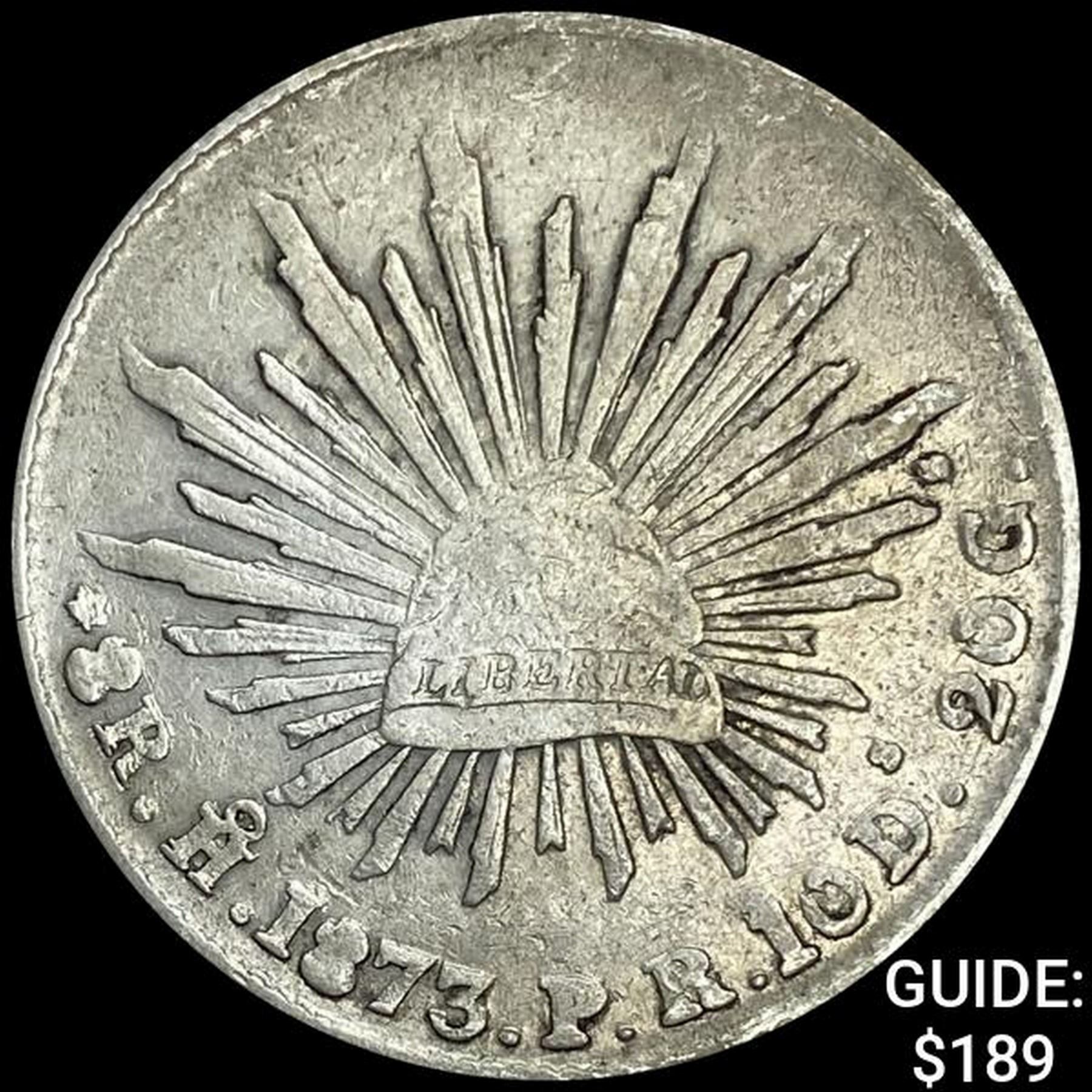 1873Ho PR Mexico Silver 8 Reales Cap&Ray NEARLY UNCIRCULATED