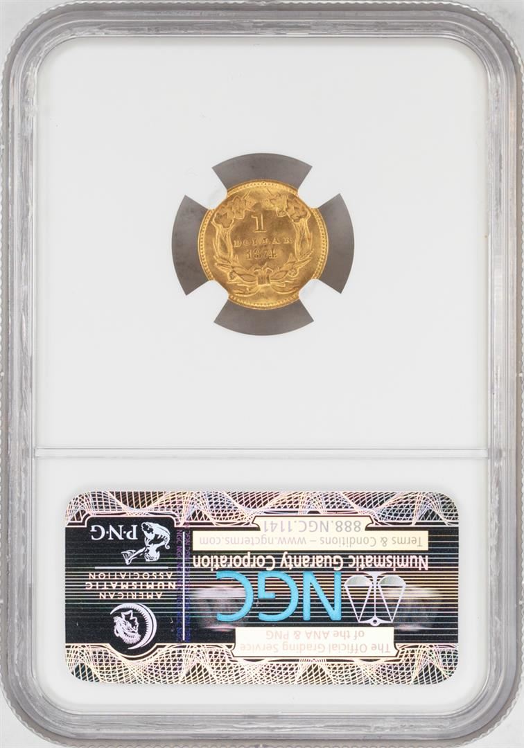 One 1874 $1 Indian Princess Head Gold Dollar Coin NGC MS64. NGC Certified.