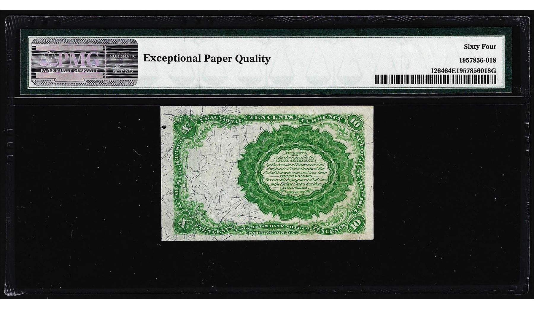 One 1874 10 Cent Fifth Issue Fractional Currency Note Fr.1264 PMG Choice Uncirculated 64EPQ. PMG Certified.