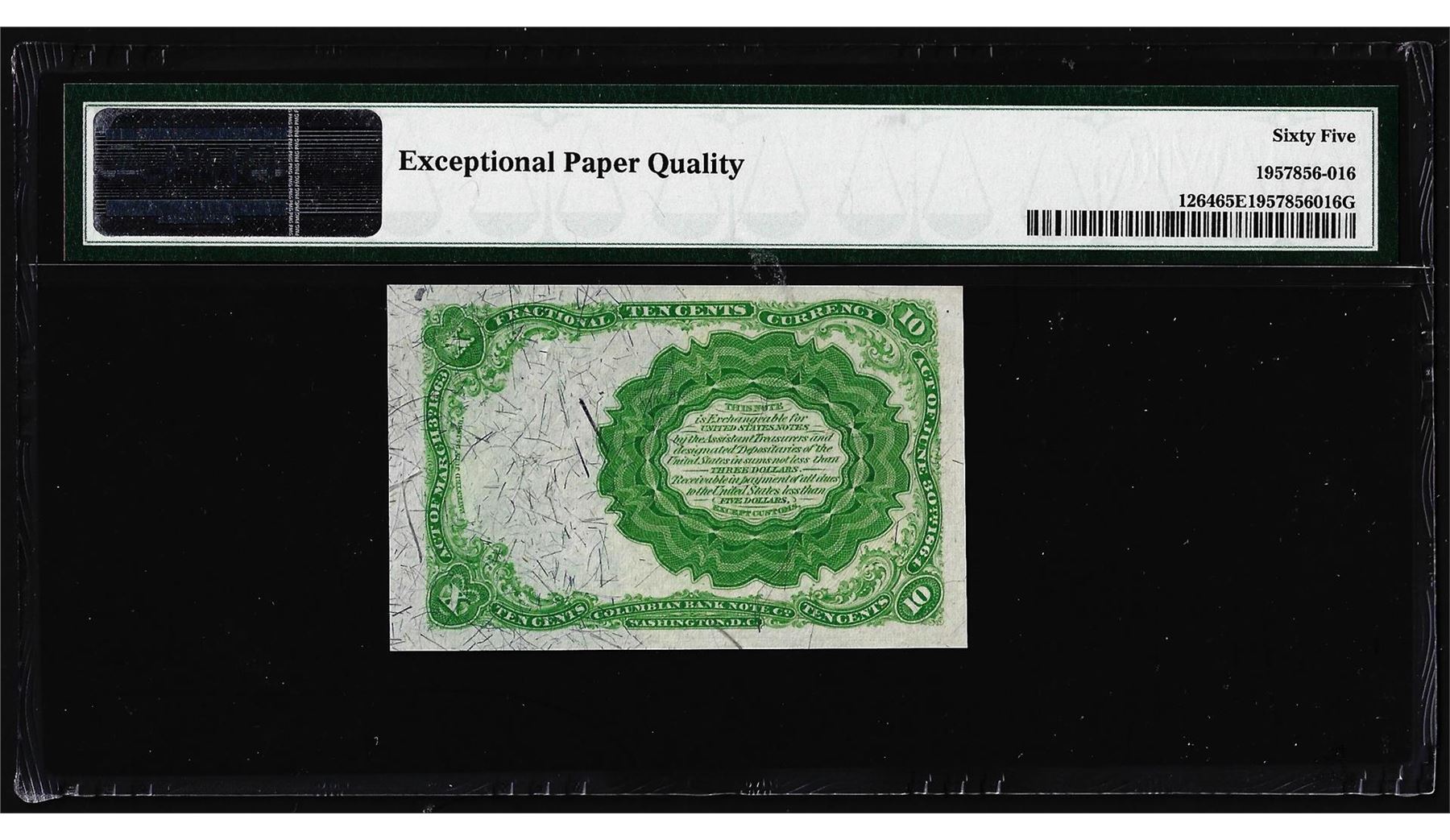 One 1874 10 Cent Fifth Issue Fractional Currency Note Fr.1264 PMG Choice Uncirculated 65EPQ. PMG Certified.