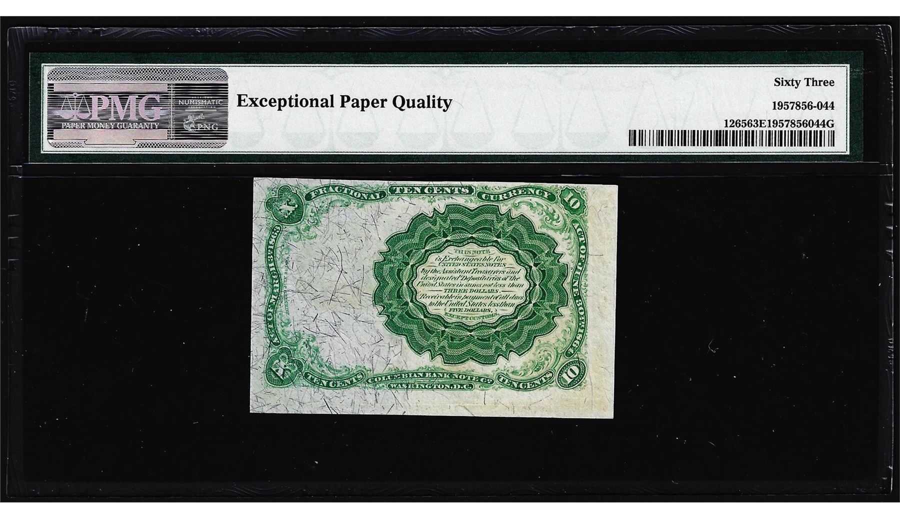 One 1874 10 Cent Fifth Issue Fractional Currency Note Fr.1265 PMG Choice Uncirculated 63EPQ. PMG Certified.