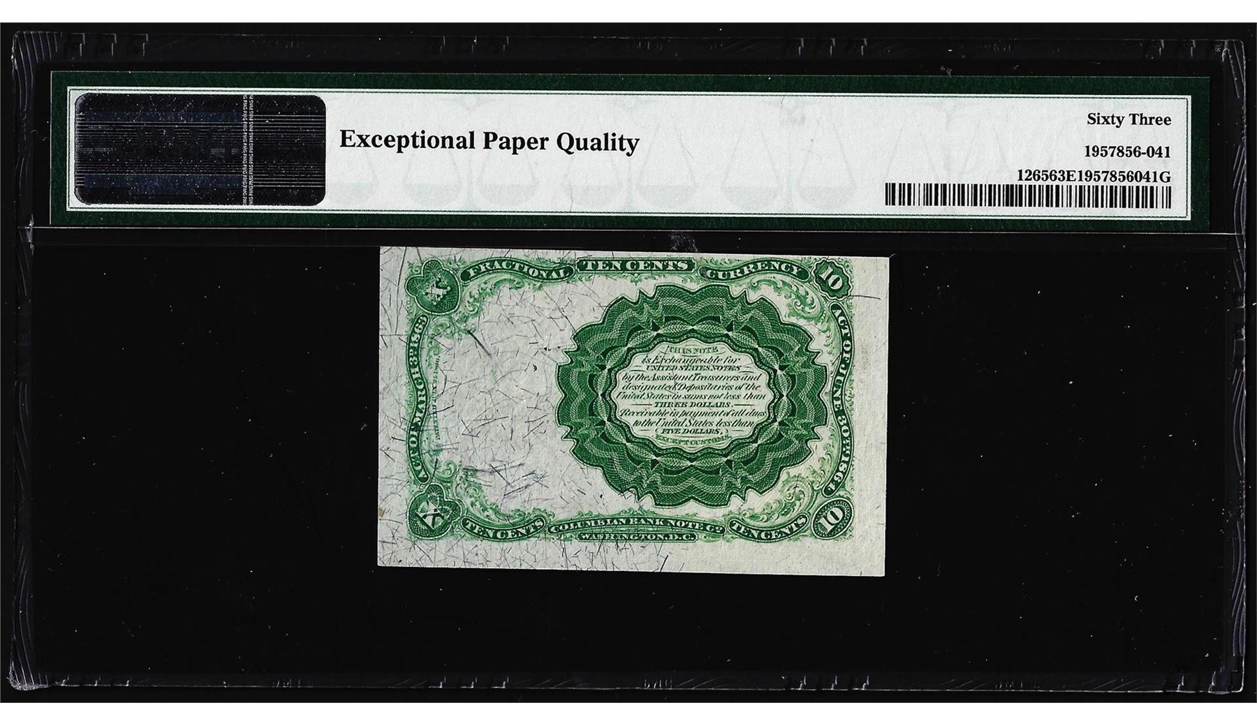 One 1874 10 Cent Fifth Issue Fractional Currency Note Fr.1265 PMG Choice Uncirculated 63EPQ. PMG Certified.
