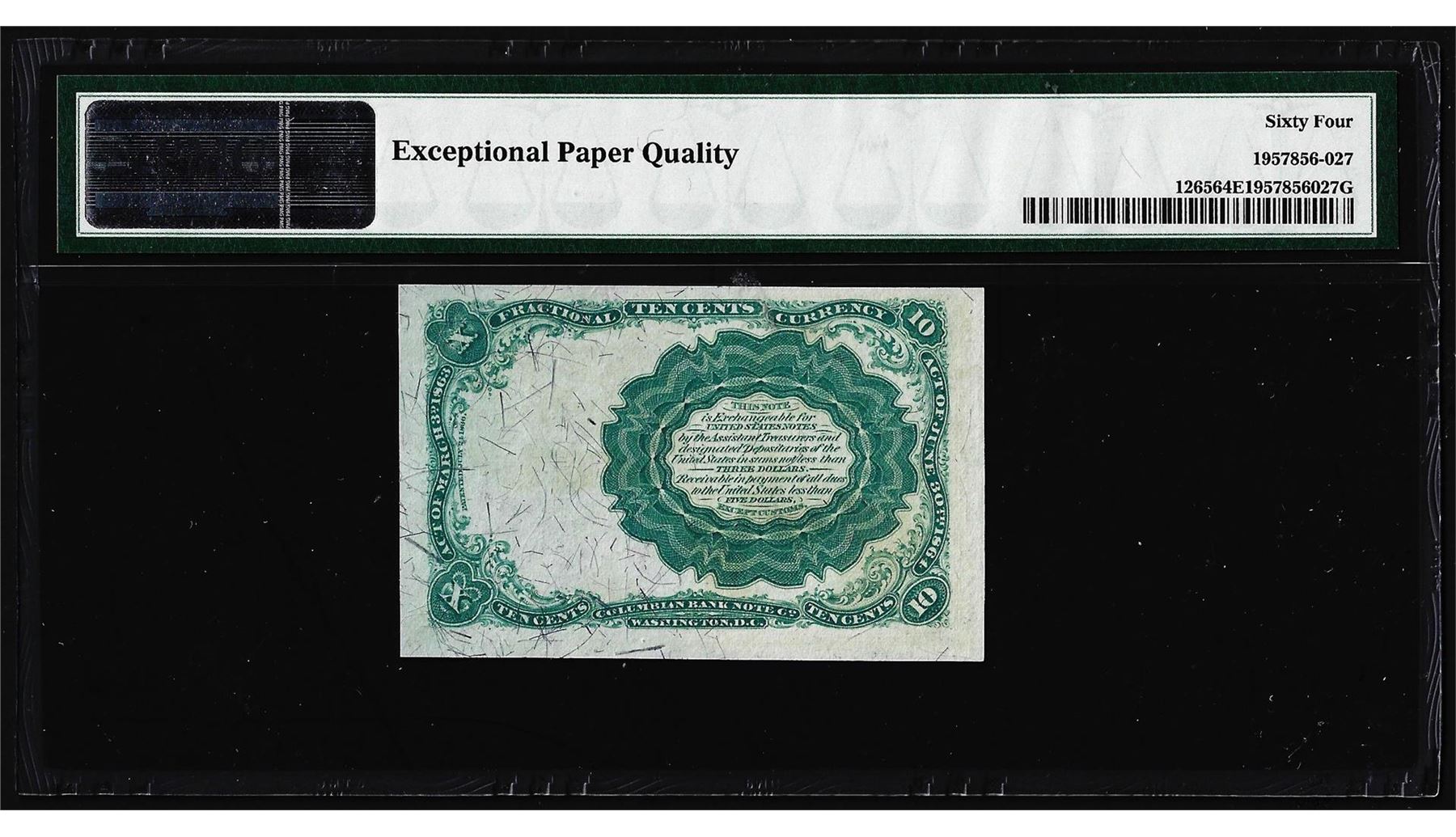 One 1874 10 Cent Fifth Issue Fractional Currency Note Fr.1265 PMG Choice Uncirculated 64EPQ. PMG Certified.