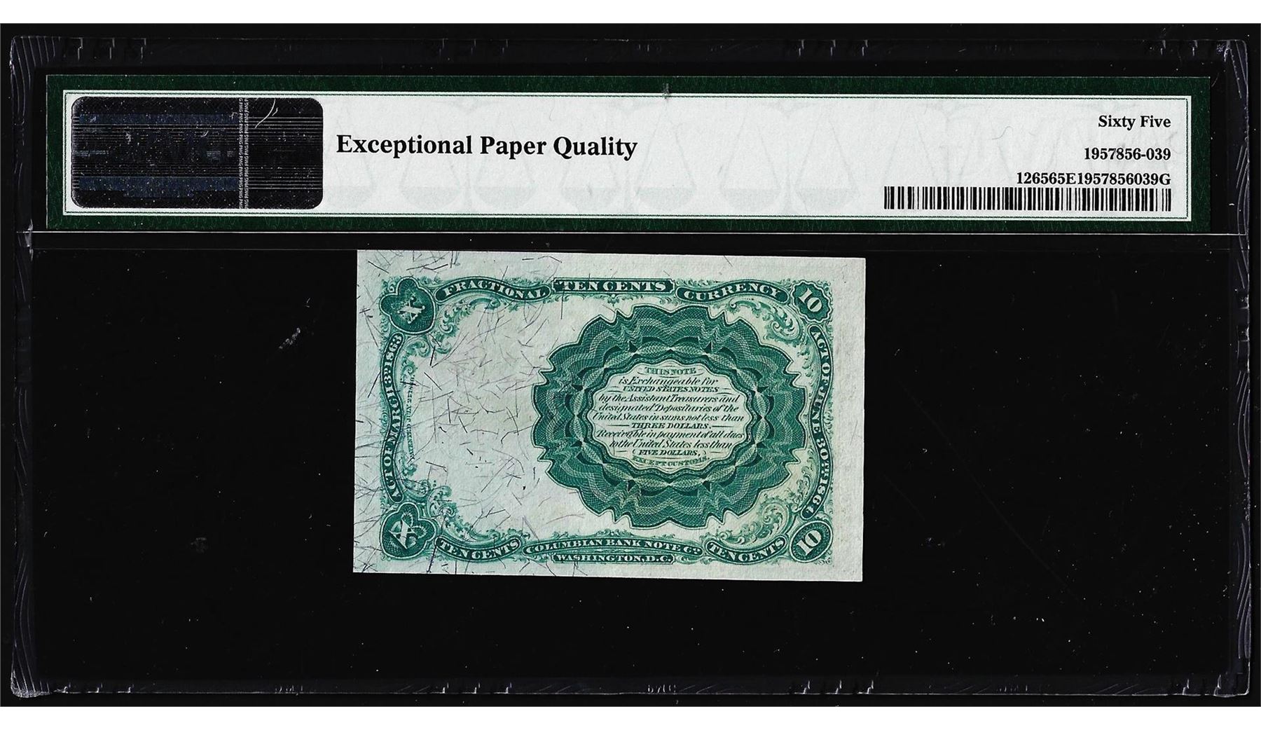 One 1874 10 Cent Fifth Issue Fractional Currency Note Fr.1265 PMG Choice Uncirculated 65EPQ. PMG Certified.