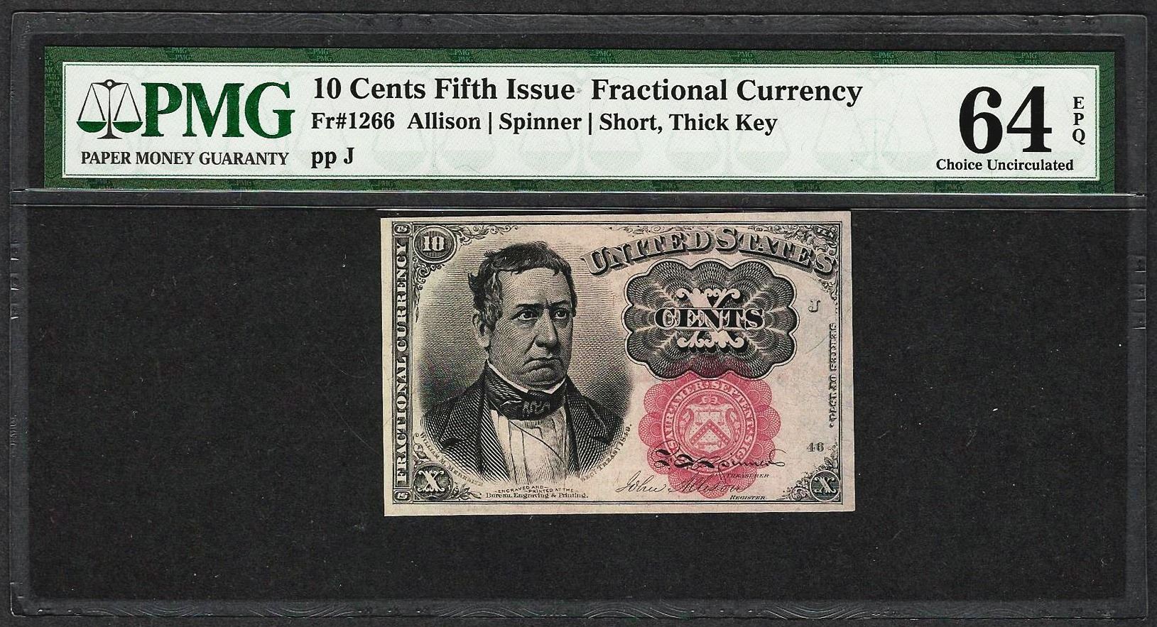 One 1874 10 Cent Fifth Issue Fractional Currency Note Fr.1266 PMG Choice Uncirculated 64EPQ.