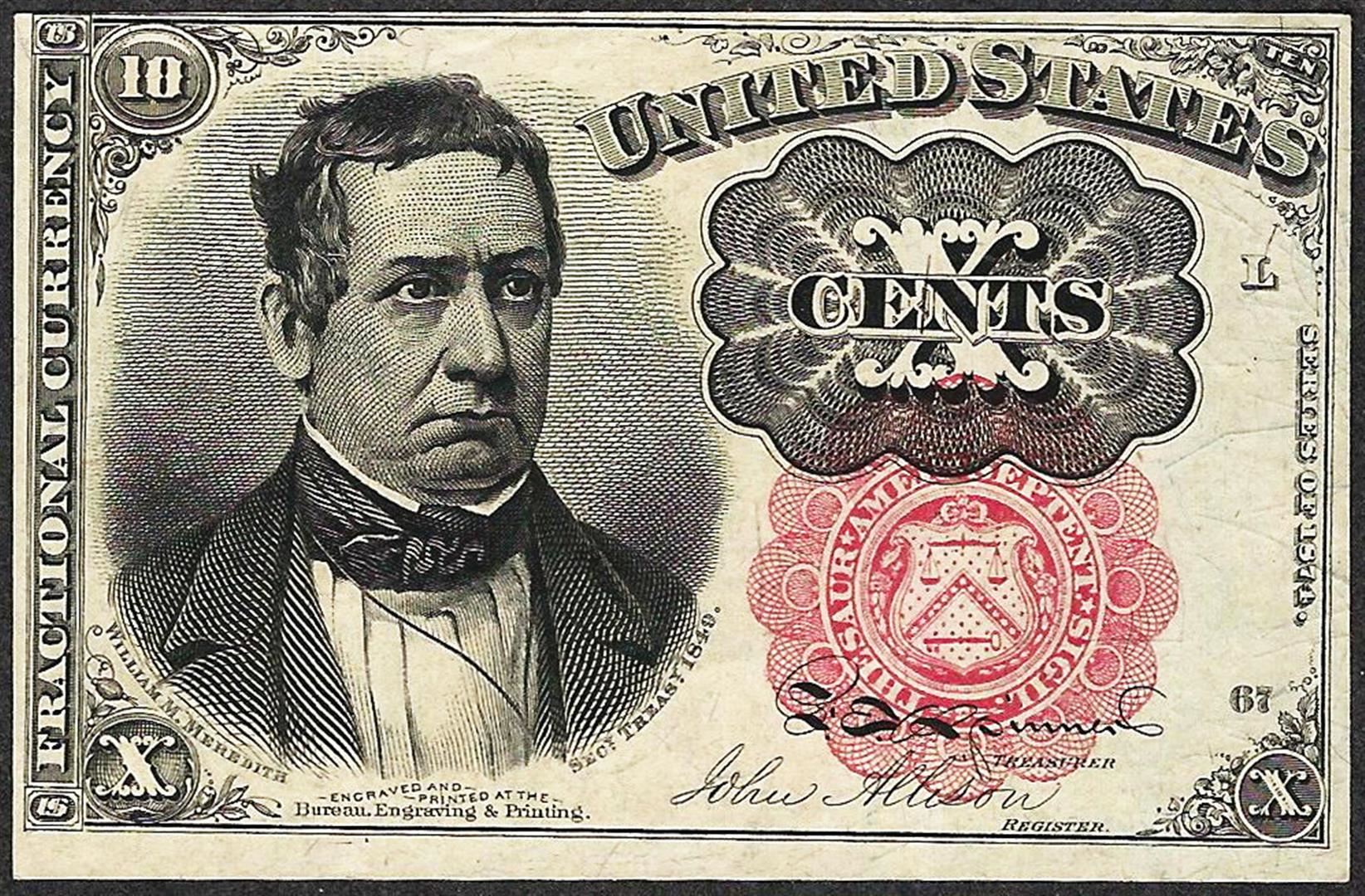 One 1874 10 Cents Fifth Issue Fractional Currency Note.