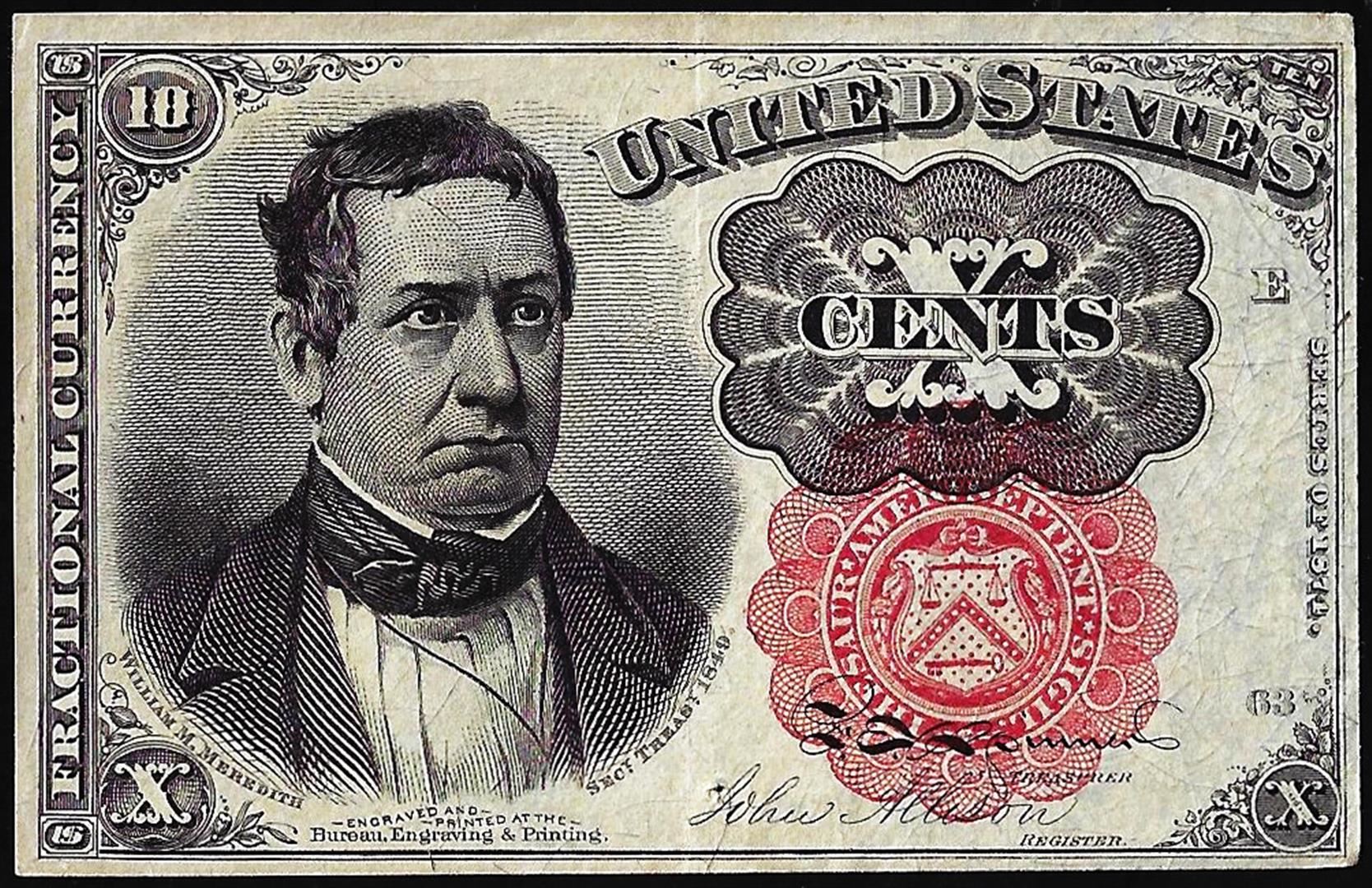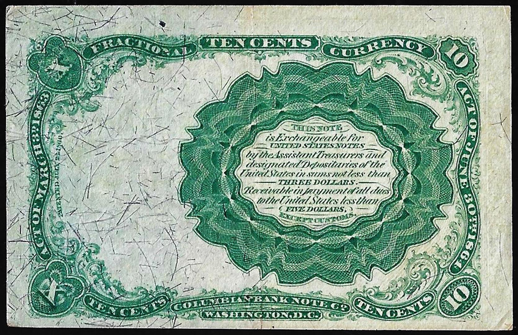 One 1874 10 Cents Fifth Issue Fractional Currency Note.