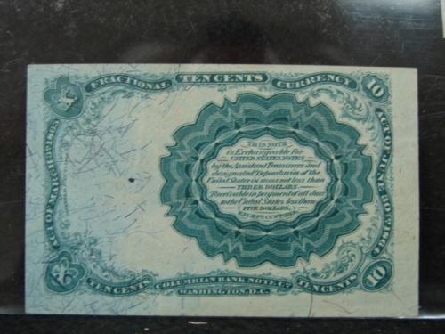 1874 10¢ U.S. FRACTIONAL CURRENCY NOTE.