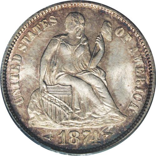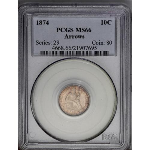 1874 10C Arrows MS66 PCGS. Fortin-108, as best we can 1874[10C] Arrows MS66 PCGS.