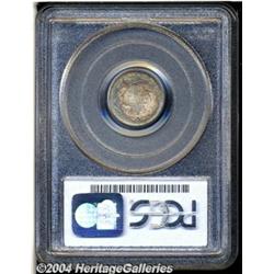 <B>1874<10C> Arrows MS66 PCGS.</B></I> Concentric shades of aqua and steel-violet toning adorn surfaces that have prooflike tendencies on the obverse and display more of a soft, frosty sheen on the reverse. Scarce both as an issue and a two-year type in this exalted grade. Population: 19 in 66, 7 finer (3/04). <BR><BR><B>Important notice:</B> Heritage usually auctions material at the rate of 200-250 lots per hour. On some occasions eBay Live bid software or the Internet may not be able to keep up with the pace of the auction. We recommend placing a realistic absentee bid now as insurance to avoid disappointment. Occasionally the auctioneer may eliminate or reject an eBay Live bid, and the auctioneer may also reopen a lot after the close of the eBay live bidding (usually because we missed an audience bid), and may reject your bid even if it shows you as the winning bidder. By bidding via eBay Live, you agree that Heritage may award the lot to another bidder at its sole discretion under the circumstances described above or any other reasonable circumstances. Since eBay bids are not shown to us until we open the lot on the floor, we treat those bids just like floor bids. In most cases the floor responds before the eBay bid is presented to us, due to Internet lag time, so for consistency we have made it a policy that floor bids are always considered first over tie eBay live bids. Also please note that all Heritage lots purchased through eBay Live carry a 20% Buyer's Premium. Please make sure you read the Terms and Conditions before you bid.
