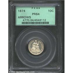 1874 10C Arrows PR64 PCGS. Brilliant throughout with deeply mirrored fields and only the slightest e