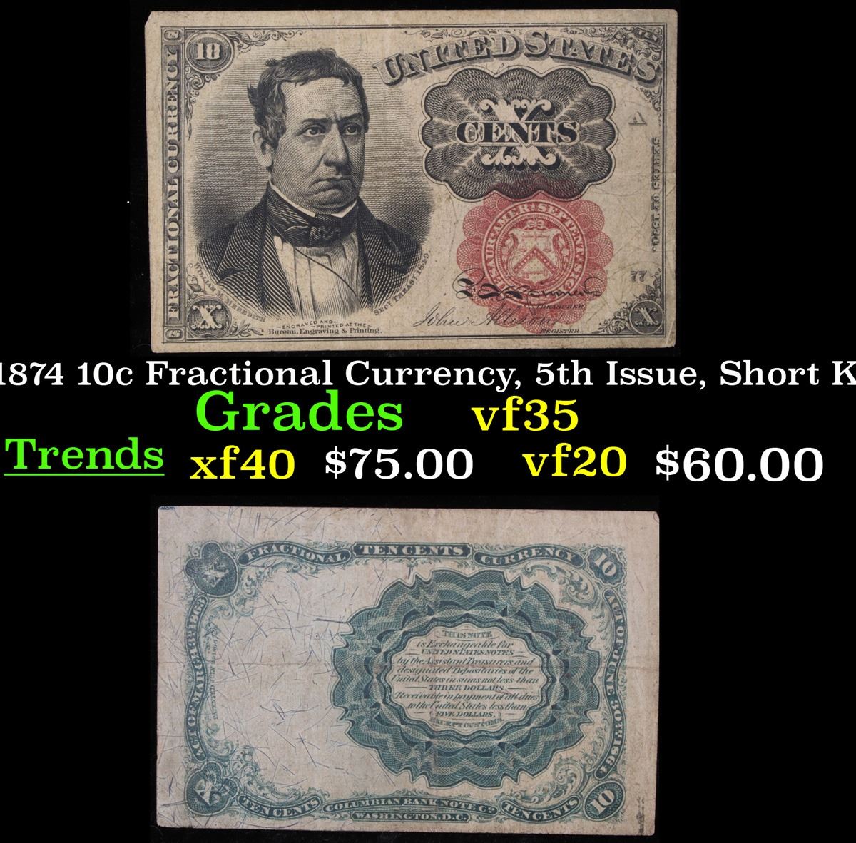 1874 10c Fractional Currency, 5th Issue, Short Key Grades vf++
