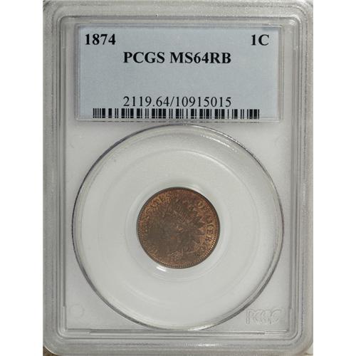 <B>1874 1C MS64 Red and Brown PCGS.</B></I> PCGS Population (0/0). NGC Census: (122/125). Mintage: 14,187,500. Numismedia Wsl. Price for NGC/PCGS coin in MS64: $292. (#2119)<BR><BR><b>Shipping:</b> Coins & Currency (<a target="_blank" href="http://www.heritageauctions.com/common/shipping.php">view shipping information</a>)