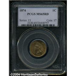 <table><tbody><tr><td><table> <TR><TD width="100%"><TABLE cellSpacing=1 cellPadding=3 width="100%" border=0><TBODY><TR><TD width="100%" bgColor=#79735c><FONT face=arial color=#ffffff size=3><B>Description</B> </FONT></TD></TR><TR><TD width="100%" bgColor=#ffffff><FONT face=arial size=2><B>1874 1C MS65 Red PCGS.</B></I> This is an uncommonly desirable representative of the issue, in that the surfaces are only slightly affected by the streaky toning often associated with extant 1874 Indian cents. The coin displays attractive orange-red color, with very clean surfaces and only a handful of insignificant carbon specks scattered throughout. Scarce at the Gem level, and with full Red color on such an early date. Population: 26 in 65 Red, 5 finer (10/03). </FONT></TD></TR></TBODY></TABLE></TD></TR></TBODY></TABLE><BR><A name=PricesRealized></A><TABLE cellSpacing=0 cellPadding=0 width="100%" bgColor=#000000 border=0><TBODY><TR><TD width="100%"><TABLE cellSpacing=1 cellPadding=3 width="100%" border=0><TBODY><TR><TD width="100%" bgColor=#79735c><A name=PR><FONT face=arial color=#ffffff size=3><B>Previous Prices from Heritage Auctions</B> </FONT></A></TD></TR><TR><TD bgColor=#f6f6ed><TABLE cellSpacing=0 cellPadding=0 width="100%" border=1><TBODY><TR><TD align=middle width="33%"><B>Date</B></TD><TD align=middle width="33%"><B>Service</B></TD><TD align=middle width="33%"><B>Price</B></TD></TR><TR bgColor=whitesmoke><TD width="33%"><B>01/07/2004</B></TD><TD width="33%">PCGS</TD><TD width="33%">$2,472.50</TD></TR><TR bgColor=whitesmoke><TD width="33%"><B>09/20/2003</B></TD><TD width="33%">NGC</TD><TD width="33%">$1,523.75</TD></TR><TR bgColor=whitesmoke><TD width="33%"><B>05/03/2003</B></TD><TD width="33%">PCGS</TD><TD width="33%">$3,910.00</TD></TR><TR bgColor=whitesmoke><TD width="33%"><B>01/11/2003</B></TD><TD width="33%">NGC</TD><TD width="33%">$2,587.50</TD></TR><TR bgColor=whitesmoke><TD width="33%"><B>06/08/2002</B></TD><TD width="33%">NGC</TD><TD width="33%">$3,335.00</TD></TR><TR bgColor=whitesmoke><TD width="33%"><B>04/27/2002</B></TD><TD width="33%">PCGS</TD><TD width="33%">$2,070.00</TD></TR><TR bgColor=whitesmoke><TD width="33%"><B>08/07/2000</B></TD><TD width="33%">PCGS</TD><TD width="33%">$1,897.50</TD></TR><TR bgColor=whitesmoke><TD width="33%"><B>09/24/1999</B></TD><TD width="33%">NGC</TD><TD width="33%">$2,300.00</TD></TR><TR bgColor=whitesmoke><TD width="33%"><B>01/08/1999</B></TD><TD width="33%">NGC</TD><TD width="33%">$2,300.00</TD></TR><TR bgColor=whitesmoke><TD width="33%"><B>09/10/1997</B></TD><TD width="33%">NGC</TD><TD width="33%">$1,320.00</TD></TR><TR bgColor=whitesmoke><TD width="33%"><B>06/06/1997</B></TD><TD width="33%">PCGS</TD><TD width="33%">$1,667.50</TD></TR><TR bgColor=whitesmoke><TD width="33%"><B>03/16/1996</B></TD><TD width="33%">PCGS</TD><TD width="33%">$1,430.00</TD></TR><TR bgColor=whitesmoke><TD width="33%"><B>10/04/1995</B></TD><TD width="33%">NGC</TD><TD width="33%">$852.50</TD></TR><TR bgColor=whitesmoke><TD width="33%"><B>10/26/2000</B></TD><TD width="33%">NGC</TD><TD width="33%">$506.00</TD></TR><TR bgColor=whitesmoke><TD width="33%"><B>02/18/2002</B></TD><TD width="33%">PCGS</TD><TD width="33%">$1,869.00</TD></TR><TR bgColor=whitesmoke><TD width="33%"><B>09/01/1999</B></TD><TD width="33%">PCGS</TD><TD width="33%">$1,840.00</TD></TR></TBODY></TABLE></TD></TR><TR><TD bgColor=#ffffff><FONT face=arial size=1 ?>PLEASE NOTE: All prices realized reflect the final hammer price PLUS the buyer's premium in auctions that charge a buyer's premium. Each item has a notation at the top of the listing indicating whether that lot included a buyer's premium. Example: A item that sells with a final hammer price of $100 and a 20% buyer's premium will display with a price realized of $120. All information listed is intended to be as accurate as possible, but errors are possible. Please use this guide carefully and inform us of any inaccuracies. </FONT></TD></TR></TBODY></TABLE></TD></TR></TBODY></TABLE><BR><TABLE cellSpacing=0 cellPadding=0 width="100%" bgColor=#000000 border=0><TBODY><TR><TD width="100%"><TABLE cellSpacing=1 cellPadding=3 width="100%" border=0><TBODY><TR><TD width="100%" bgColor=#79735c colSpan=6><FONT face=arial color=#ffffff size=3><B>Price Guide*</B> </FONT></TD></TR><TR bgColor=#f6f6ed><TD align=middle><B>Grade</B> </TD><TD align=middle><B>Coin World<BR>(Trends)</B> </TD><TD align=middle><B>Numismedia<BR>Retail</B> </TD><TD align=middle><B>Numismedia<BR>Wholesale</B> </TD><TD align=middle><B>Coin<BR>Universe</B> </TD><TD align=middle><B>Heritage<BR>Value Index</B> </TD></TR><TR bgColor=#ffffff><TD align=middle>64</TD><TD align=right>$2,000.00</TD><TD align=right>---</TD><TD align=right>$950.00</TD><TD align=right>$1,600.00</TD><TD align=right>$980.00</TD></TR><TR style="FONT-WEIGHT: bold" bgColor=#cccfdd><TD align=middle>65</TD><TD align=right>$5,000.00</TD><TD align=right>---</TD><TD align=right>$2,750.00</TD><TD align=right>$4,250.00</TD><TD align=right>$2,293.63</TD></TR><TR bgColor=#ffffff><TD align=middle>66</TD><TD align=right>$7,500.00</TD><TD align=right>---</TD><TD align=right>$6,775.00</TD><TD align=right>---</TD><TD align=right>$5,250.00</TD></TR><TR bgColor=#ffffff><TD colSpan=6><FONT size=1>*All information listed is intended to be as accurate as possible, but errors are possible. No item may be returned or refused based on this information which is provided as a service to our customers. You should contact each pricing source directly to determine the accuracy of this information. </FONT></TD></TR></TBODY></TABLE></TD></TR></TBODY></TABLE><BR><TABLE cellSpacing=0 cellPadding=0 width="100%" bgColor=#000000 border=0><TBODY><TR><TD width="100%"><TABLE cellSpacing=1 cellPadding=3 width="100%" border=0><TBODY><TR><TD width="100%" bgColor=#79735c><FONT face=arial color=#ffffff size=3><B>Population Guide</B> </FONT></TD></TR><TR bgColor=#ffffff><TD align=middle><!-- Begin Output of Population Grid--><TABLE cellSpacing=0 cellPadding=0 width="100%