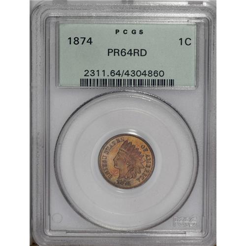 1874 1C PR64 Red PCGS. Boldly defined with vivid reddi
