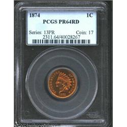 1874 1C PR64 Red PCGS. Rich deep orange color manifests itself on the well-struck and reflective sur