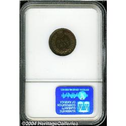 <B>1874<1C> PR65 Red and Brown NGC.</B></I> This is a lovely Gem proof with faded red color and considerable brown and bluish-brown toning. The diagonal of the 4 is extended below the left end of the crossbar. The reverse is rotated slightly counterclockwise. <BR><BR><B>Important notice:</B> Heritage usually auctions material at the rate of 200-250 lots per hour. On some occasions eBay Live bid software or the Internet may not be able to keep up with the pace of the auction. We recommend placing a realistic absentee bid now as insurance to avoid disappointment. Occasionally the auctioneer may eliminate or reject an eBay Live bid, and the auctioneer may also reopen a lot after the close of the eBay live bidding (usually because we missed an audience bid), and may reject your bid even if it shows you as the winning bidder. By bidding via eBay Live, you agree that Heritage may award the lot to another bidder at its sole discretion under the circumstances described above or any other reasonable circumstances. Since eBay bids are not shown to us until we open the lot on the floor, we treat those bids just like floor bids. In most cases the floor responds before the eBay bid is presented to us, due to Internet lag time, so for consistency we have made it a policy that floor bids are always considered first over tie eBay live bids. Also please note that all Heritage lots purchased through eBay Live carry a 20% Buyer's Premium. Please make sure you read the Terms and Conditions before you bid.